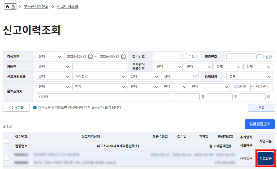 🚩부동산거래신고필증 발급(2부)